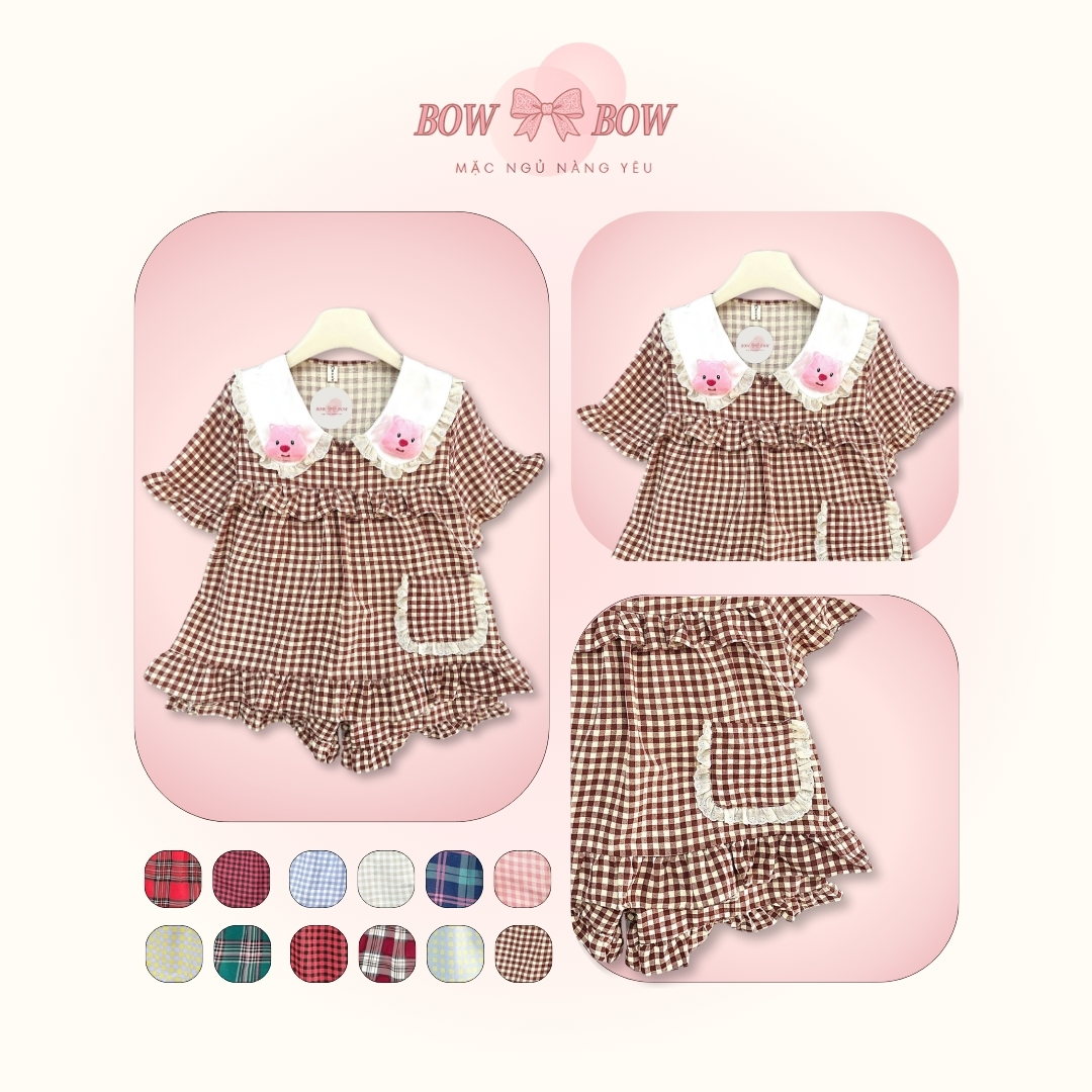 Bộ đồ ngủ caro cổ sen hoa – Boww Bow